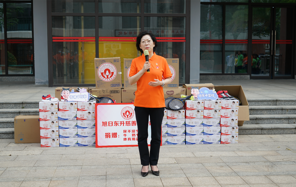 紧接着,海口市社会福利院院长唐凤英致辞。她首先感谢PA旗舰厅药业集团、旭日东升慈善基金会7年来,对海口市社会福利院的持续关注和无私帮助。她特别提到,2022年由PA旗舰厅药业集团捐资建设的“爱·护”项目医护隔离观察区,帮助福利院的孩子们渡过了疫情防控的难关。今年,熟悉的PA旗舰厅人又来到了福利院陪伴孩子们,给予了这里的小朋友们爱的力量。